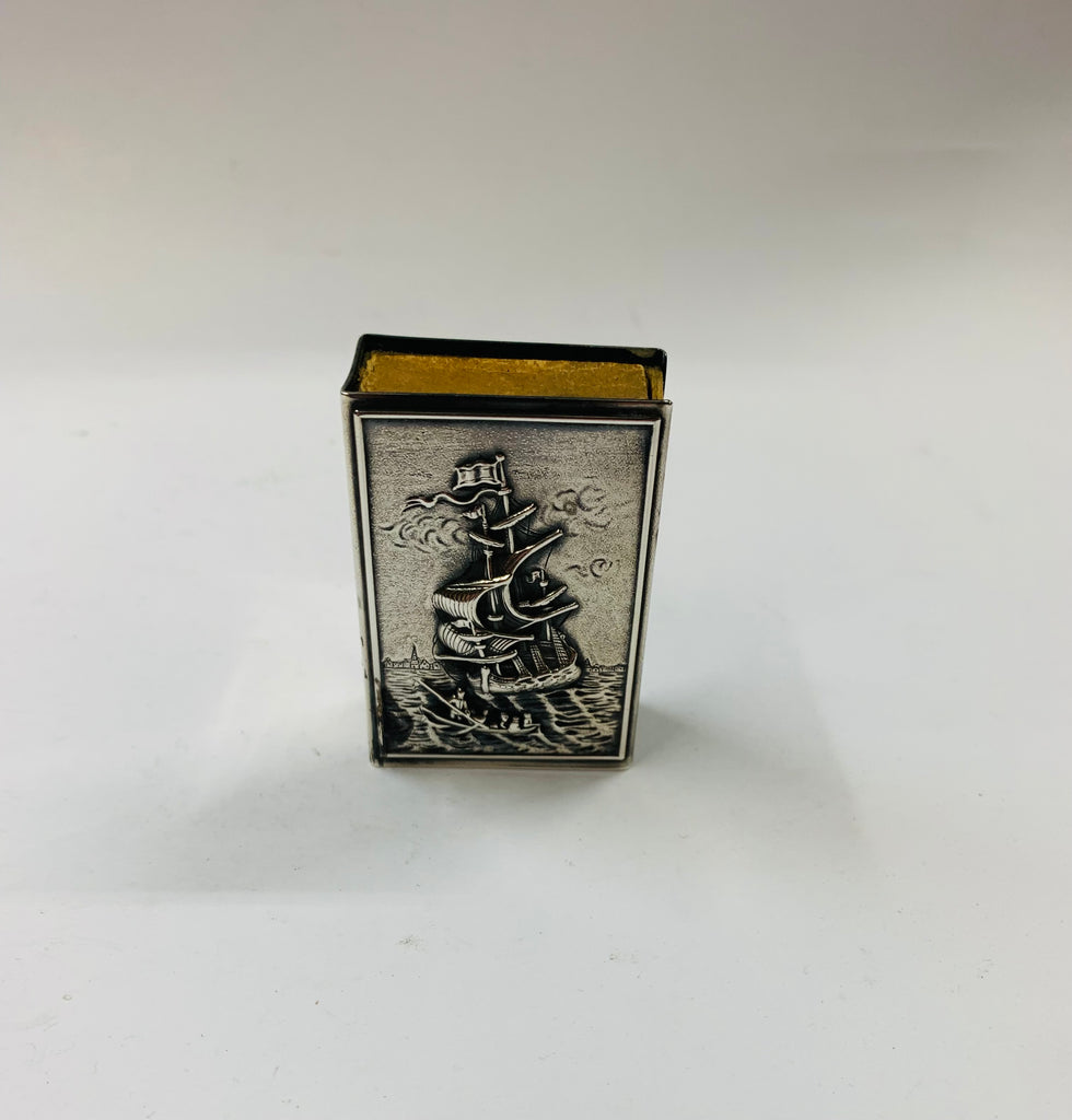 Silver plated tall ship match box holder