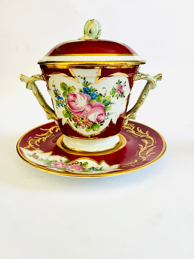 Antique Limoges Porcelain Bouillon lidded bowl and Plate