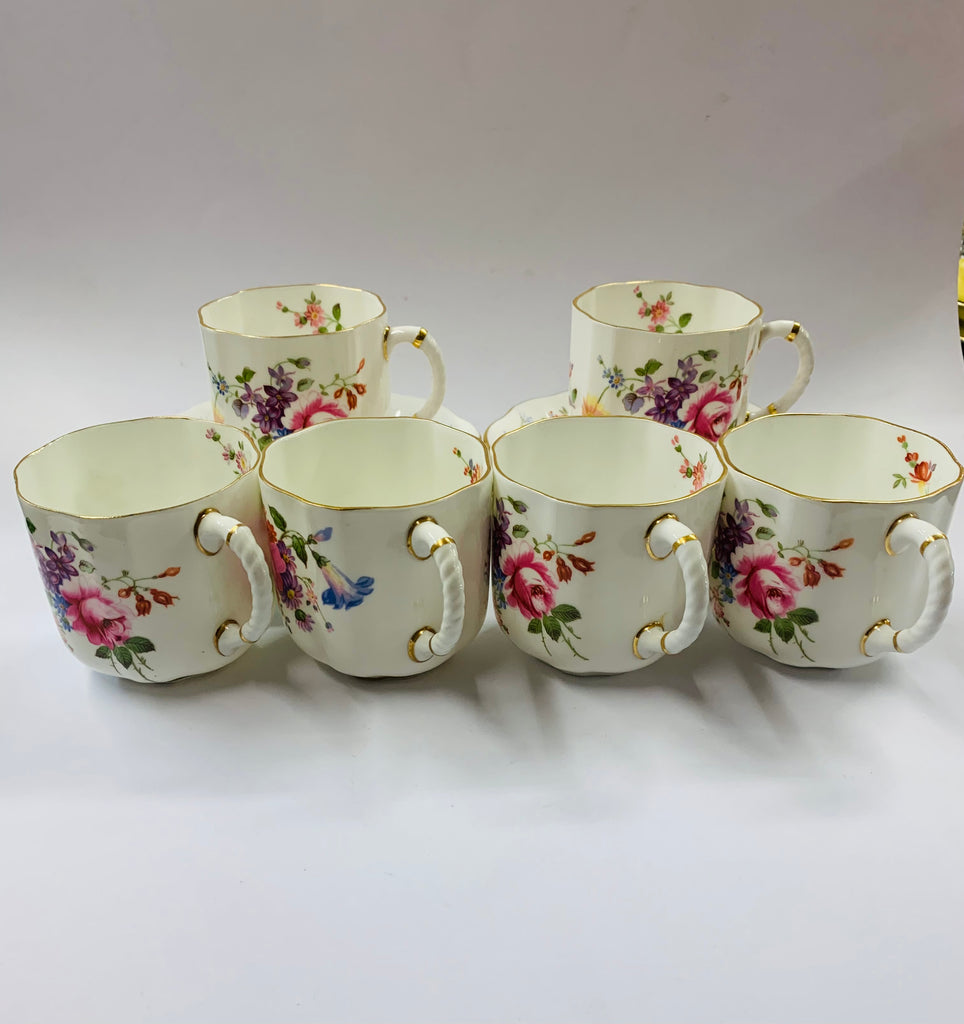 Set 6 Royal Crown Derby posies coffee cups and saucers