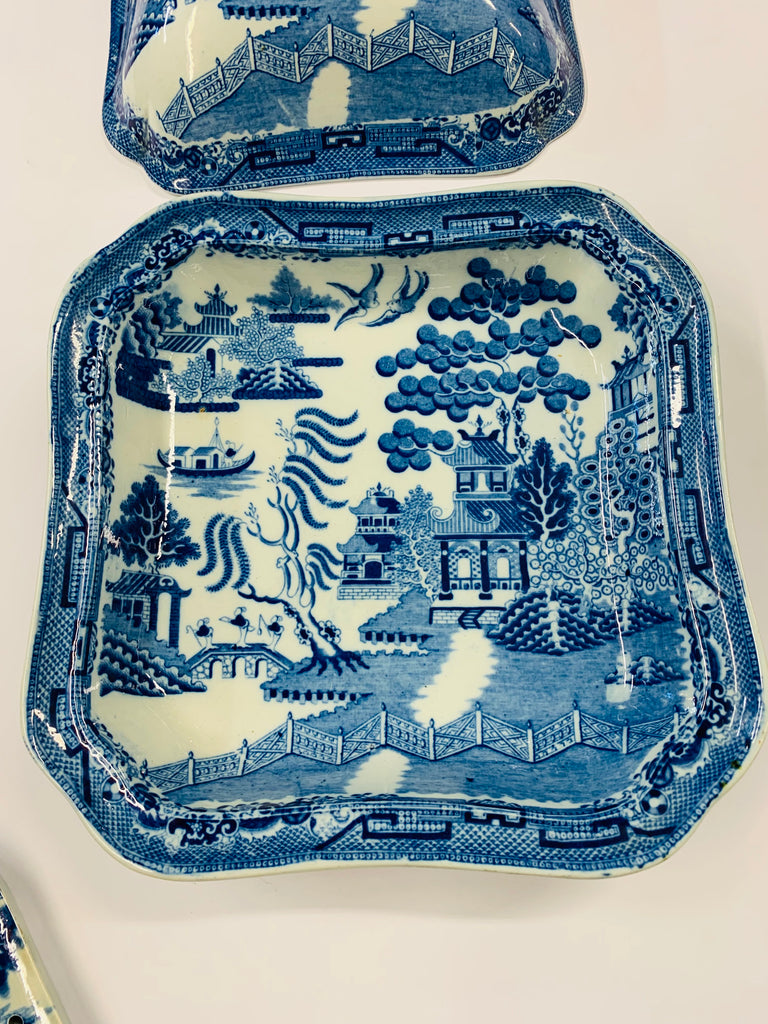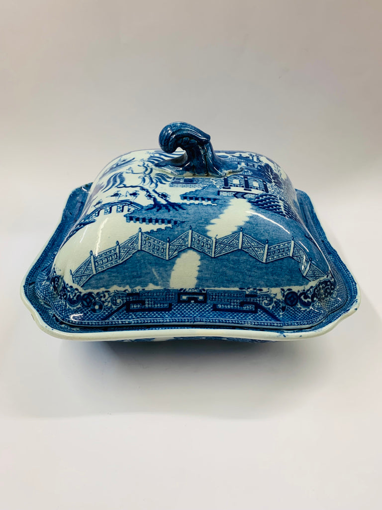 Antique Willow pattern tureen with drip tray