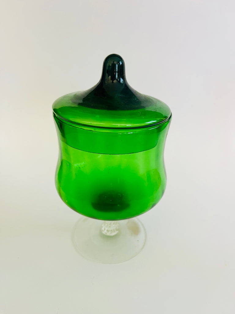 Art Glass Green Lidded Lolly Jar