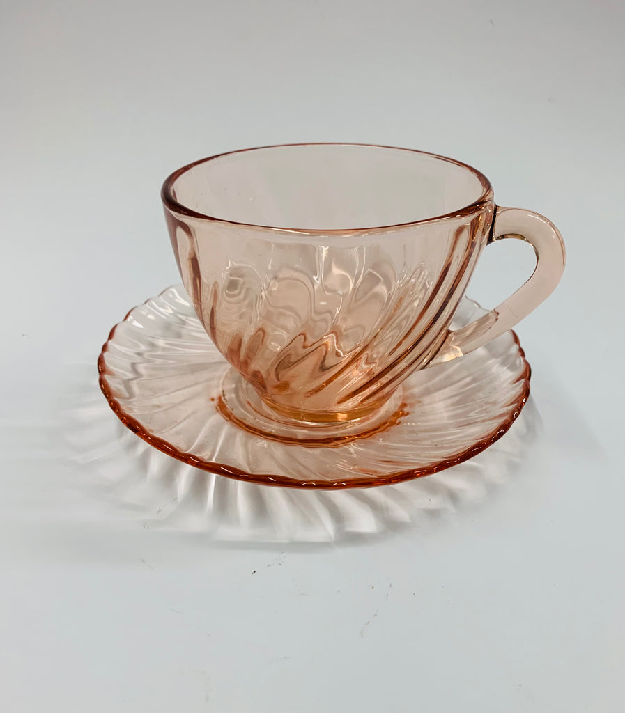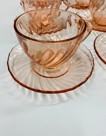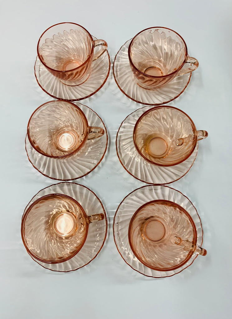 Set of 6 French depression glass cups and saucers