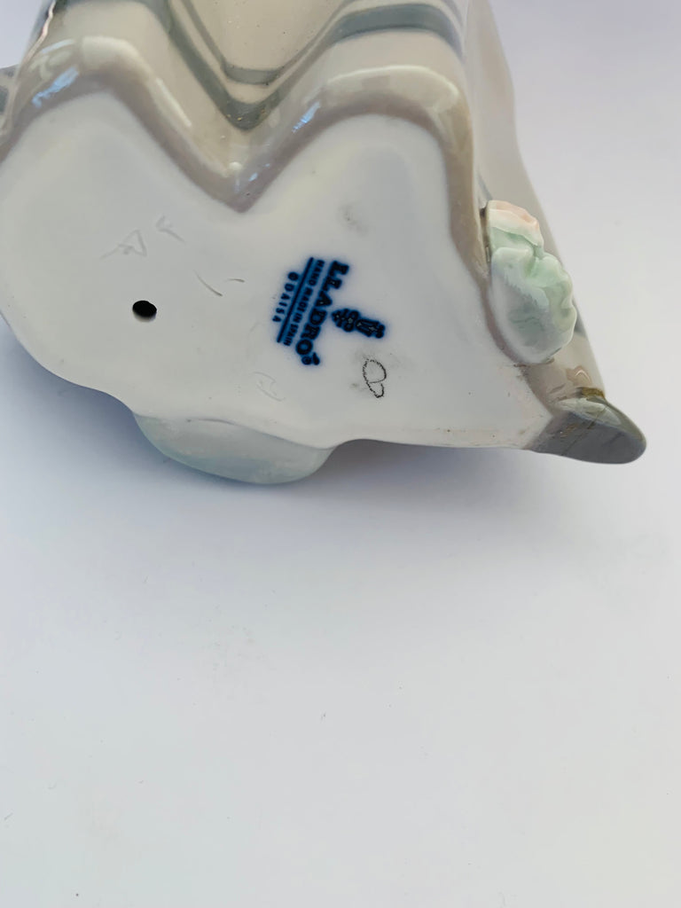 Lladro girl holding a basket of puppies