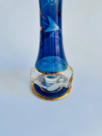 Blue Glass Perfume Bottle with Gold Trim