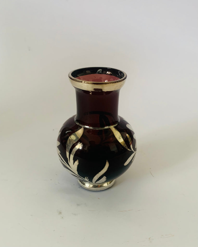 Purple Venetian glass and silver overlay vase
