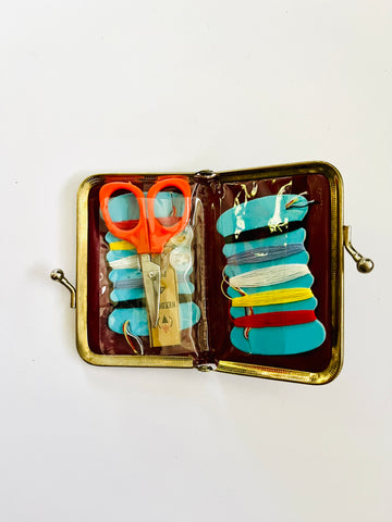 Inside it has needles, threads and scissors