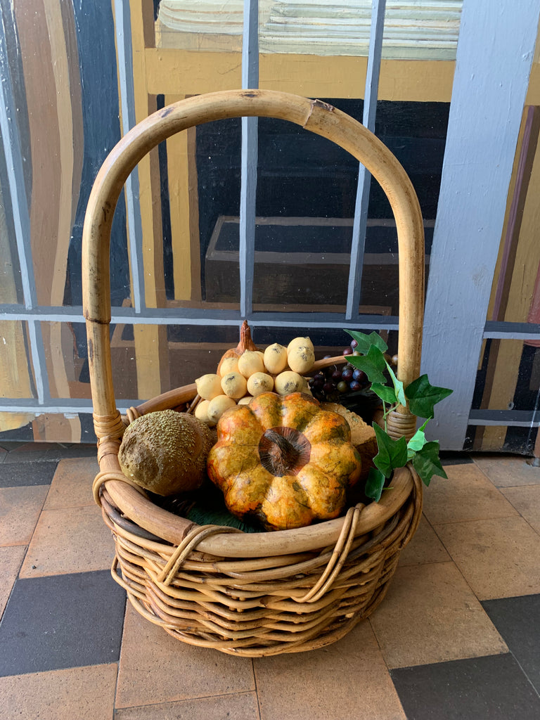 Vintage cane basket of produce