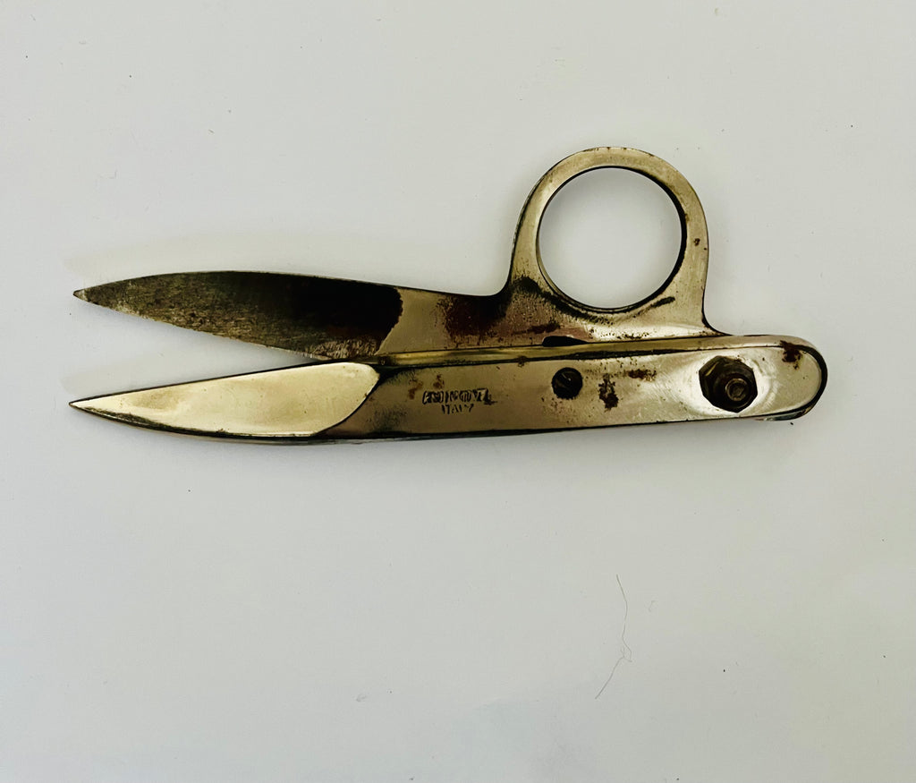 These are vintage Italian thread snips (also called nippers or clippers), commonly used in tailoring and embroidery for precision cutting of threads and lightweight materials.