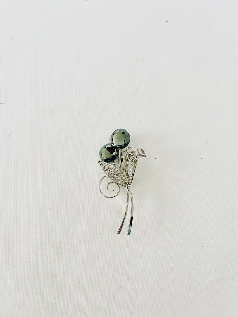 Silver Coloured Brooch with Gun Metal Grey Flowers