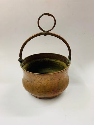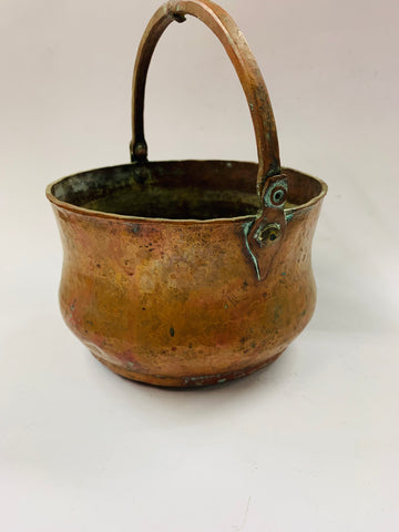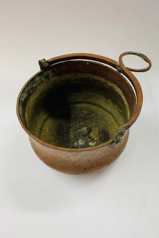 Antique beaten copper cauldron