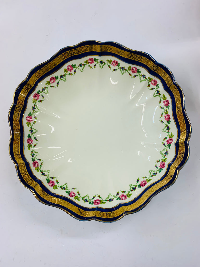 Cobalt blue and gold design rim with row of roses inside