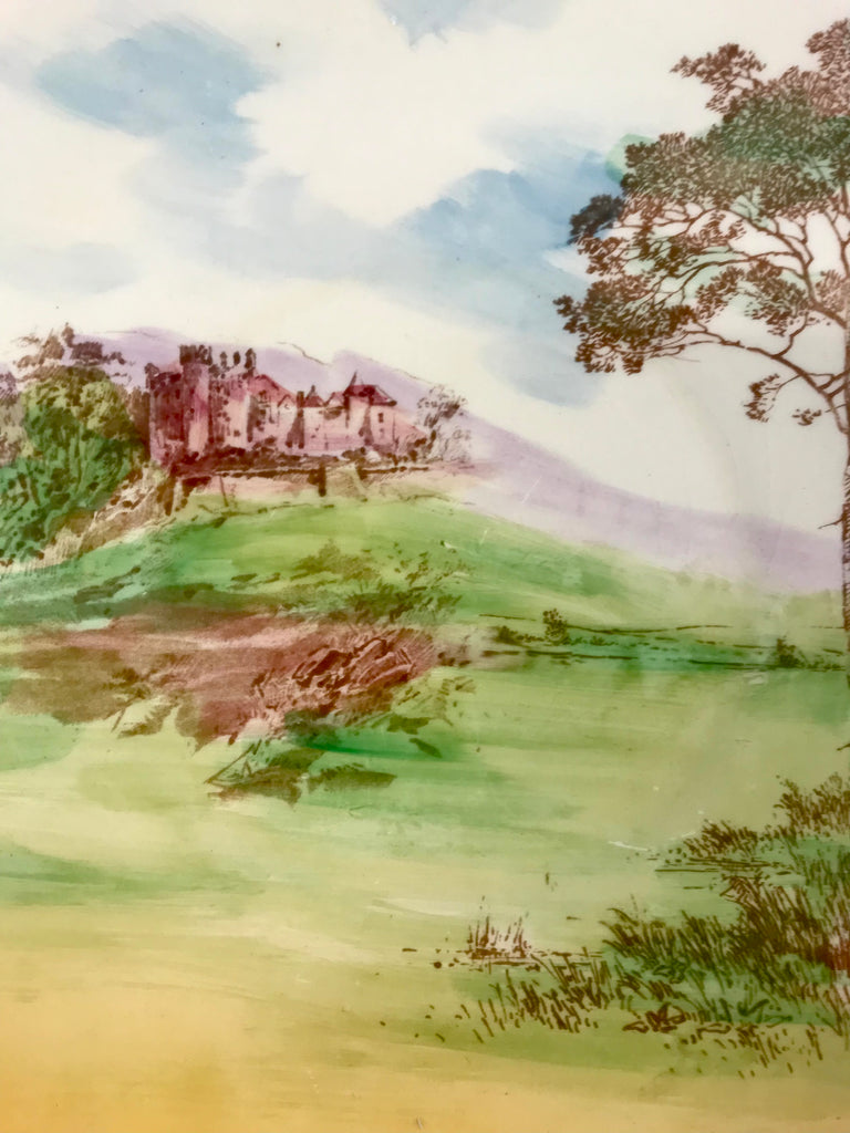 With vibrant green carrying edges and a Handpainted landscape with Ardencapel Castle