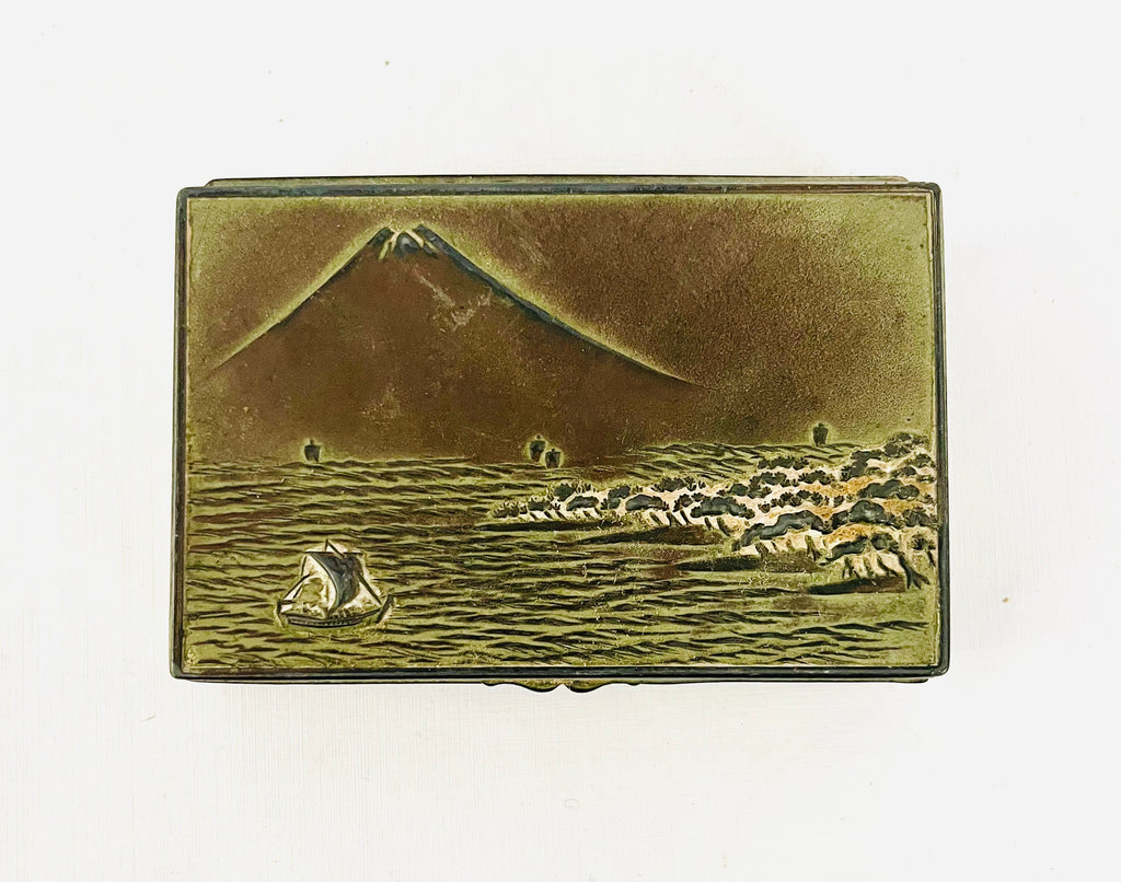 Metal Tin or a Sea Scape (maybe Rangitoto Island with a sail boat)